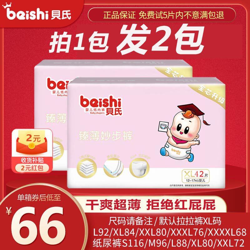 Bei's pull-up pants xxxl newborn baby diapers xxl ultra-thin breathable baby diapers m official flagship store