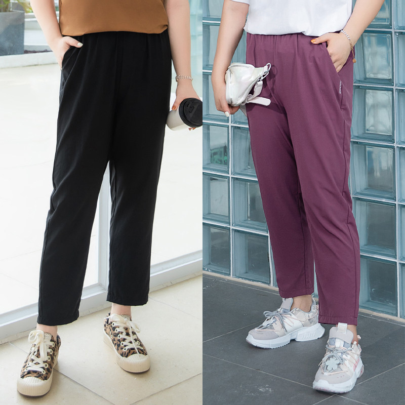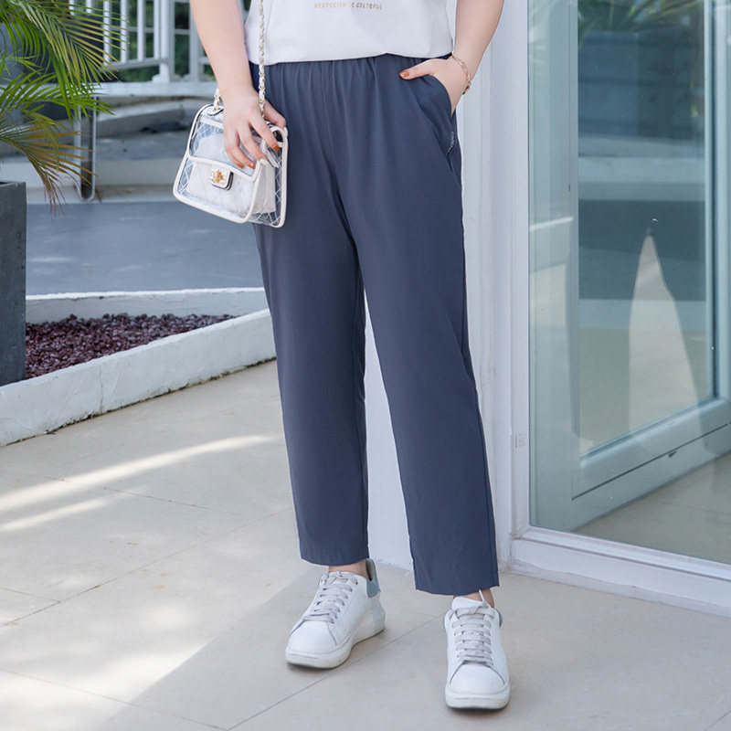 MsShe plus size women's clothing 2021 new summer fat mm thin quick-drying ice silk cool Harun nine-point pants