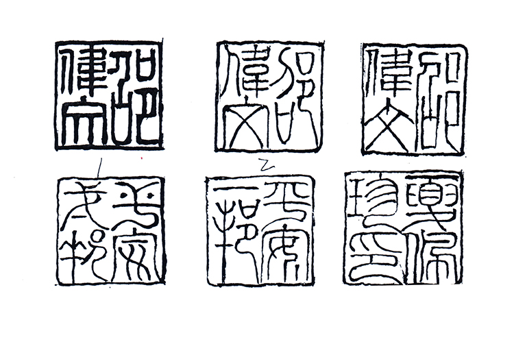 Handmade custom printing design of various text pattern drawing calligraphy chapter