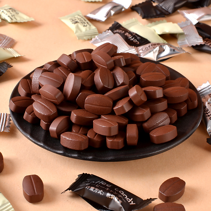 Coffee sugar-ready black coffee beans on meteorite can chew to prevent trapped and pink candy