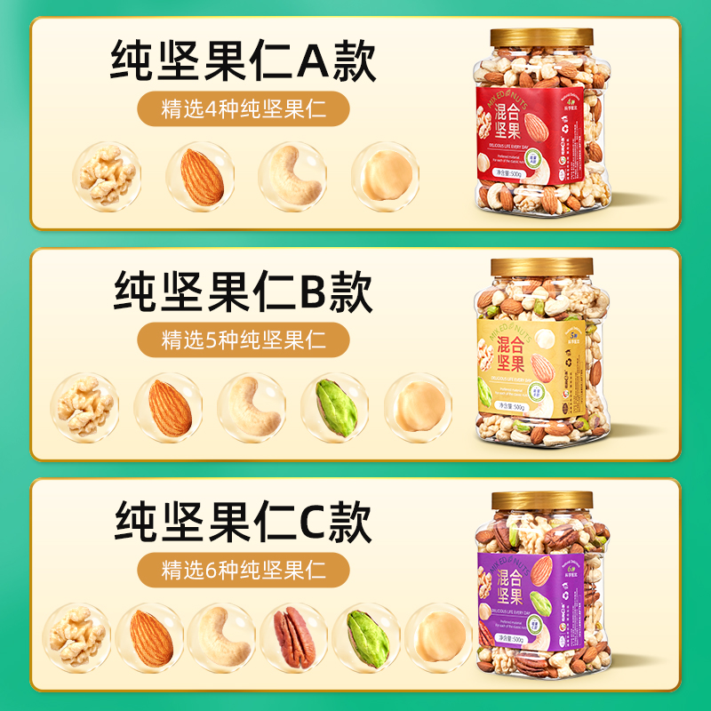 Daily Nut Snacks Mix Pure Nut Jen 500g Canned Original Taste No Added Sugar Pregnant Pregnant children Special Gen Meal-Taobao