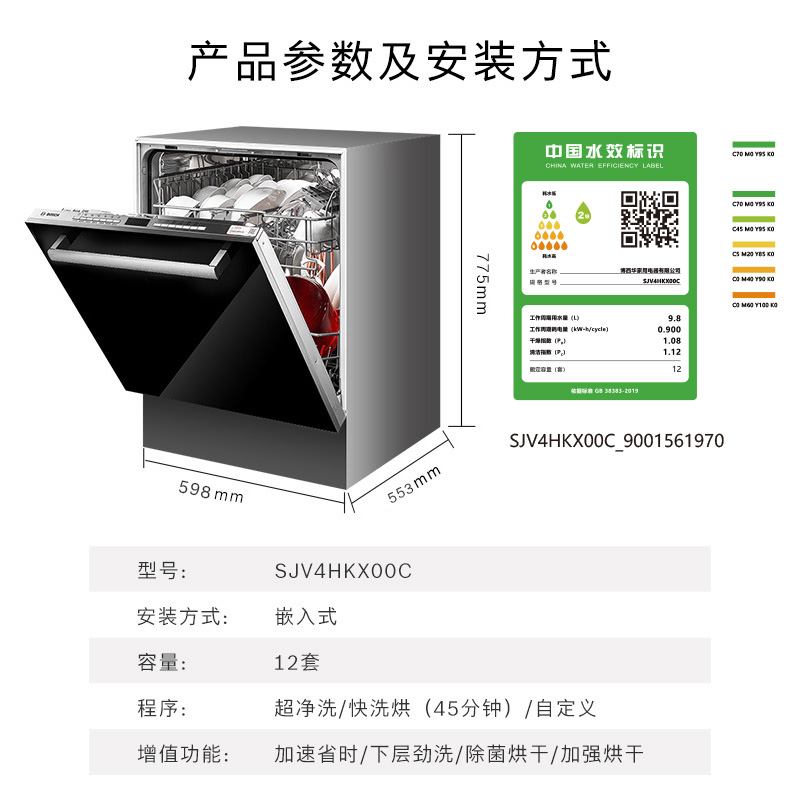 Bosch Bosch new product fully automatic embedded intelligent sterilization and disinfection dishwasher household SJV4HKX00C
