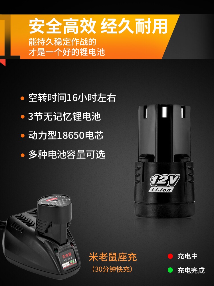 Dragon rhyme electric drill lithium battery Gomez 12V battery Cavani charger 16 8V Fuger 25V electric drill