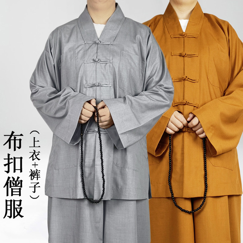 Cloth button monk clothing short set small gown short gown sophomore monk monk clothes summer and autumn style men and women the same style monk clothes hand-breasted