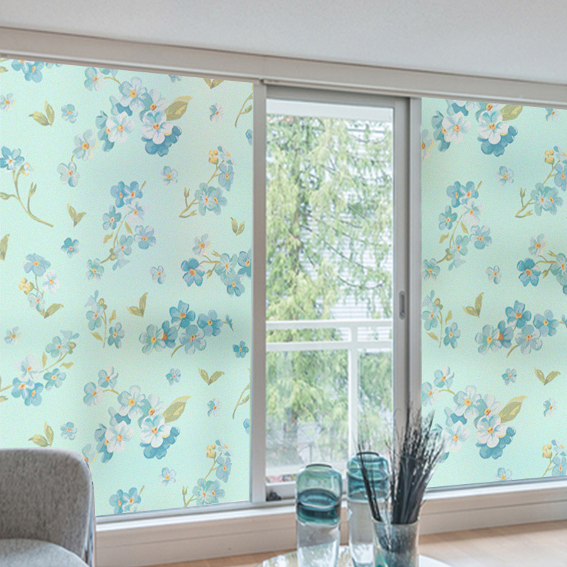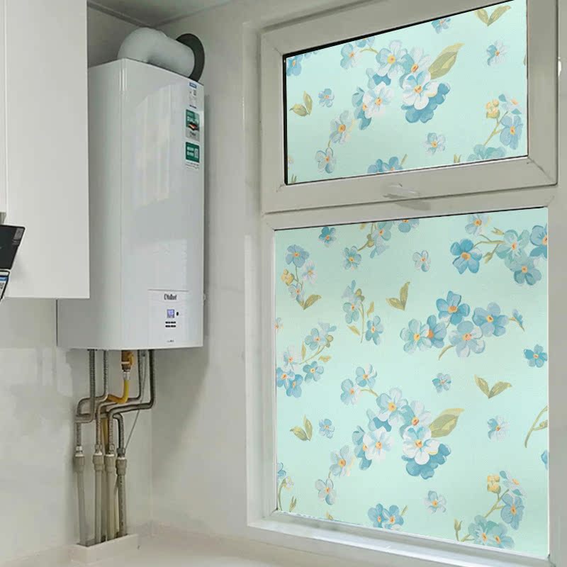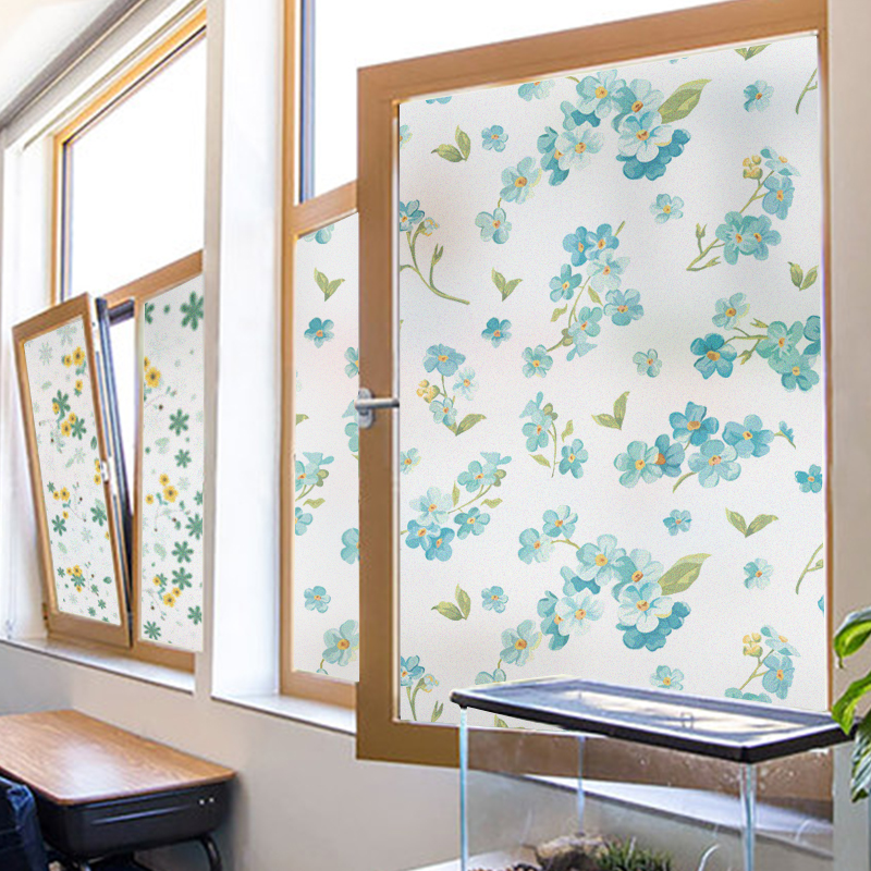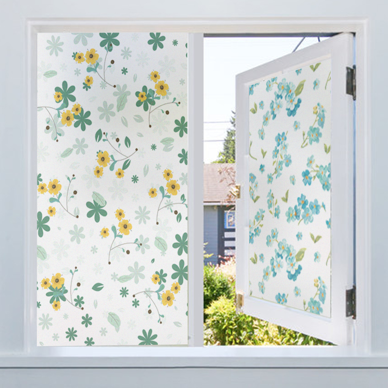 Frosted Glass Sticker Full Blackout Bathroom Powder Room Window Sticker Continuous Flower Pattern Window Sticker Anti-Privacy Privacy