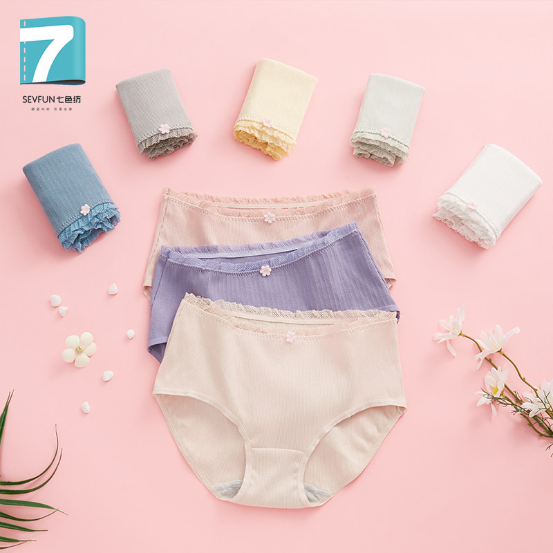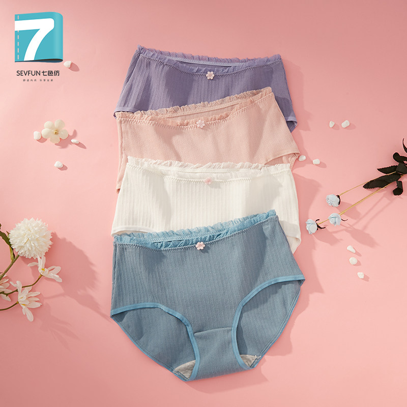 SEVFUN Ladies Briefs Summer Thin Cotton Printed Antibacterial Girl Cotton Four-corner Pants Triangle Pants Mid Waist High Bomb