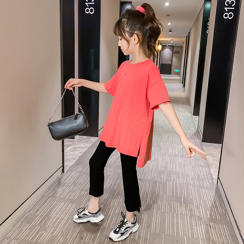 Ocean Pie Girl Two Suits Summer 2022 New Tide Children CUHK Children Slim Fit Summer Clothing Nets Red Trendy Clothes