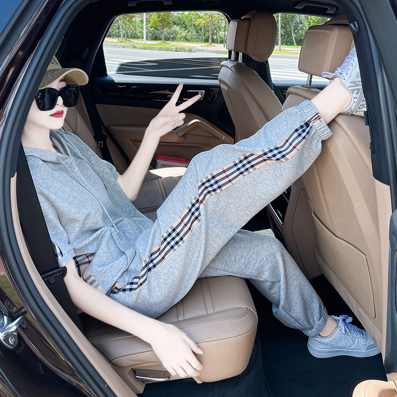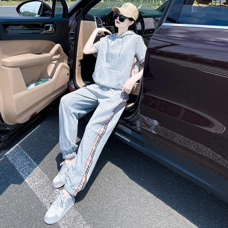 The European Station Leisure Sports Set Women's Summer Model 2022 new fashion loose hoods two large sizes