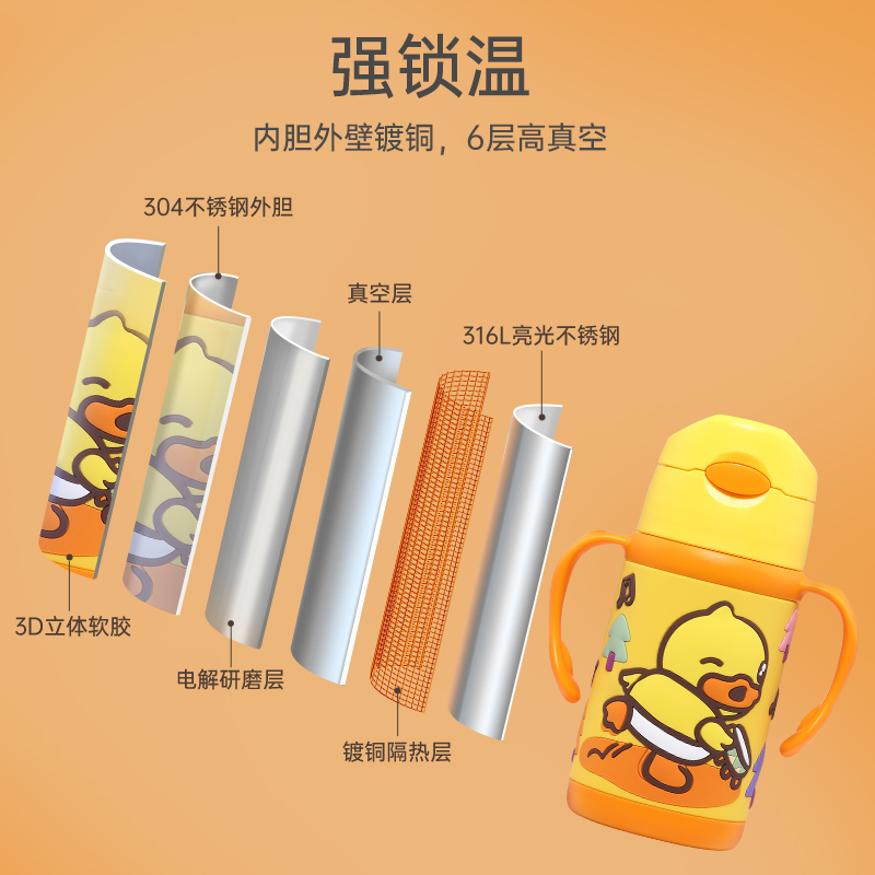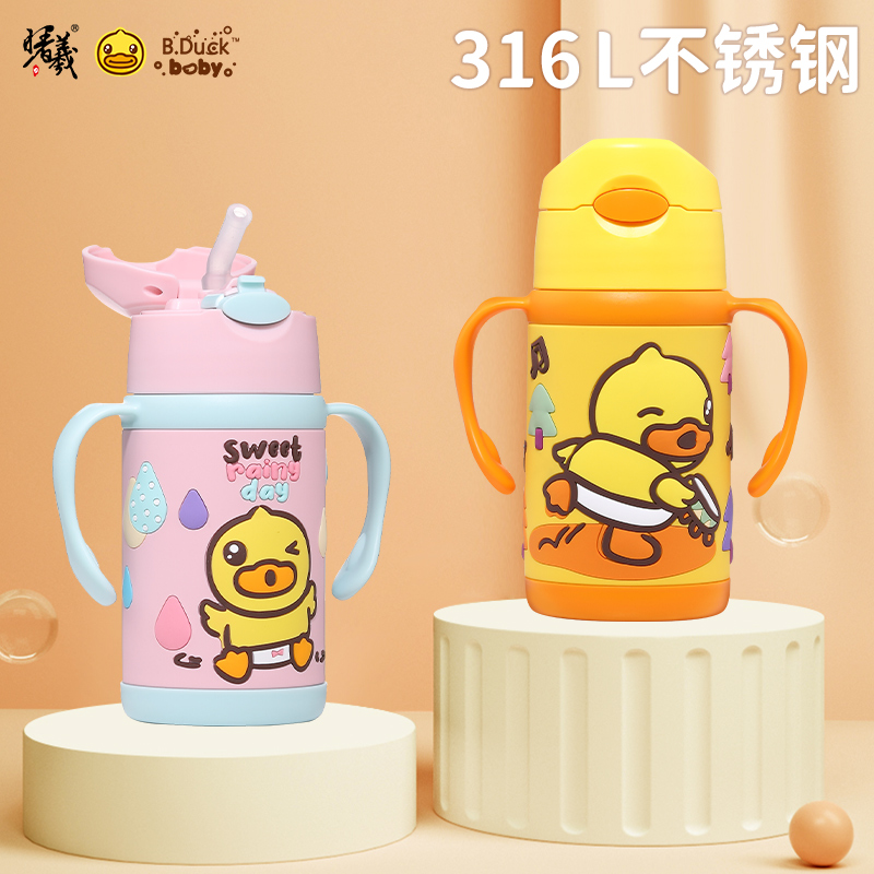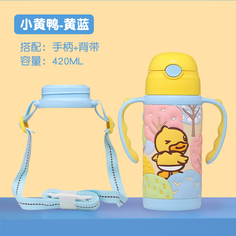 Little yellow duck children's thermos cup kindergarten with straw water cup for primary school students portable kettle boys and girls cartoon water Cup