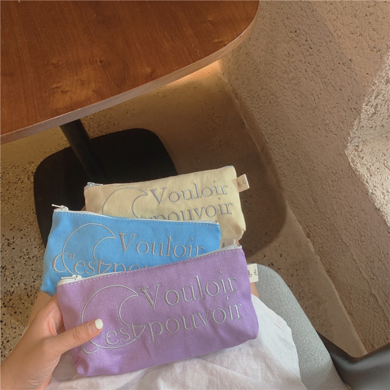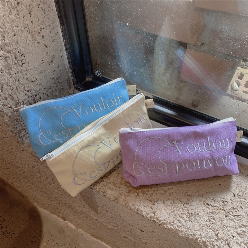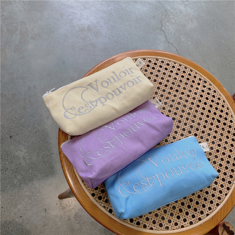 Original Niche Art Embroidery Retro Ins Cute Young Girl Students Large Capacity Canvas Pen Bag Stationery Containing Bag