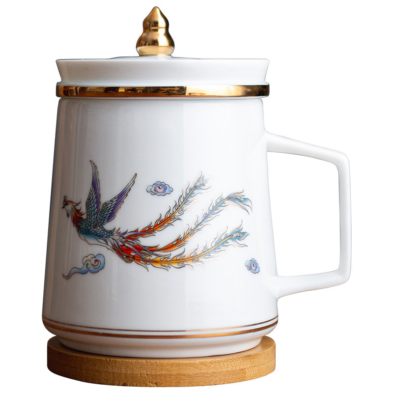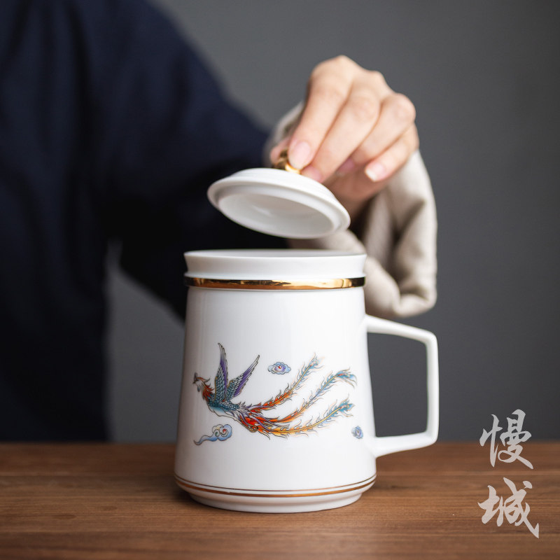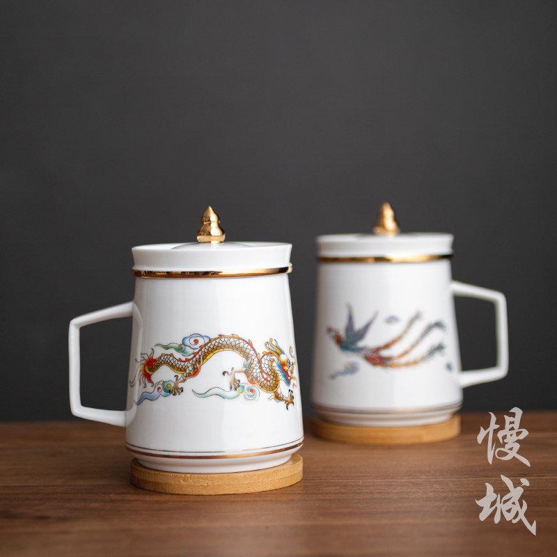Slow City Dragon Flying Phoenix Office Cup Home Tea Water Separation Tea Cup Ceramic Water Glass Creative Personal Mark Cup