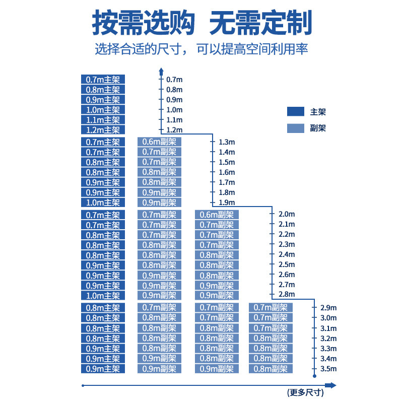 Length 100 * High 240cm seven-storey subrack (black and white grey down single remark color) Long 60 * High 200cm Six layers of subshelves (black and white grey under single note color) Long 70 * high