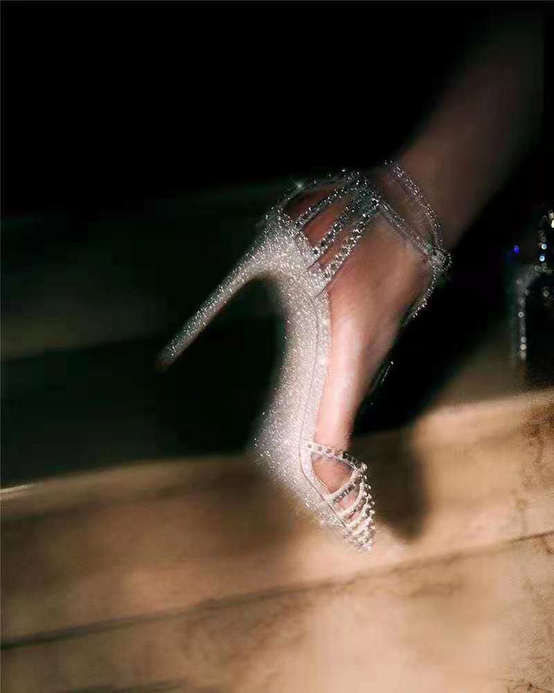 Treasure hyperlinks (Andromeda's crystal shoes) ~ ~ Little crowdwatching 2021 new water drills high heel sandals