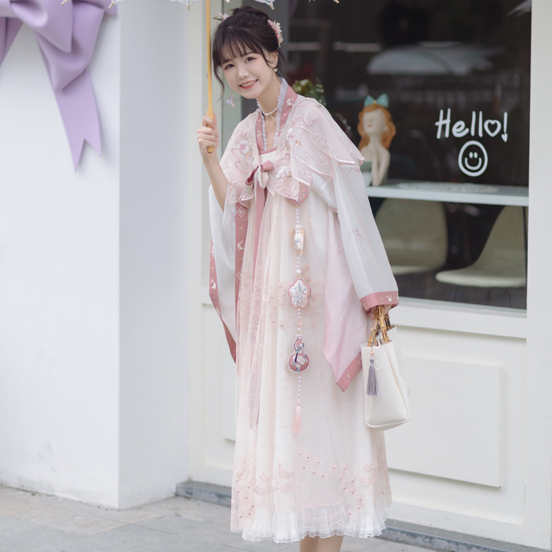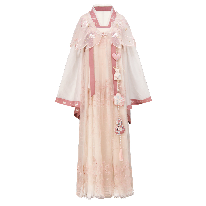 Kaudai Time: Peach Xiaoxiang Han Element Set Southern North to the large sleeve mesh gauze hanging dress
