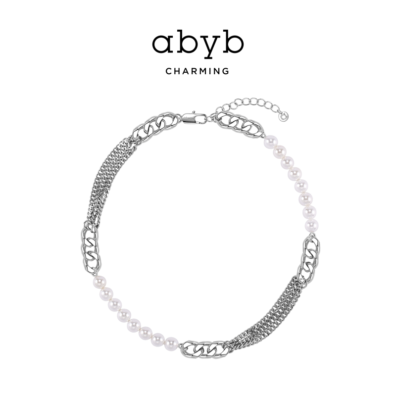 abyb charming Yang Haoming with pearl chain stitching double-layer necklace female male choker tide cool