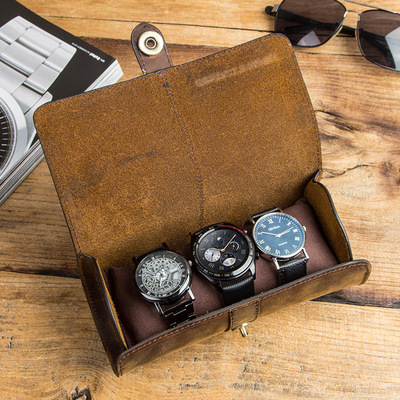 New Contacts Family Genuine Leather Watches Box 3 Only Round Buckle Outdoor Travel Watches Containing Box Mad Mapleather Three Dress Containing Bags
