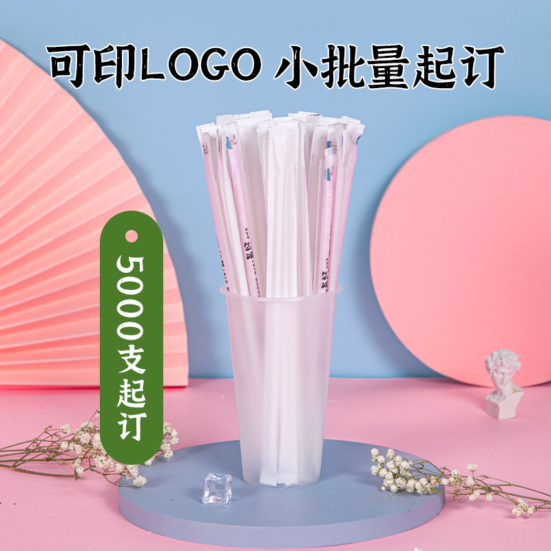 Thin straw milk tea pp plastic PLA degradable disposable juice high temperature resistant tip single packaging custom logo