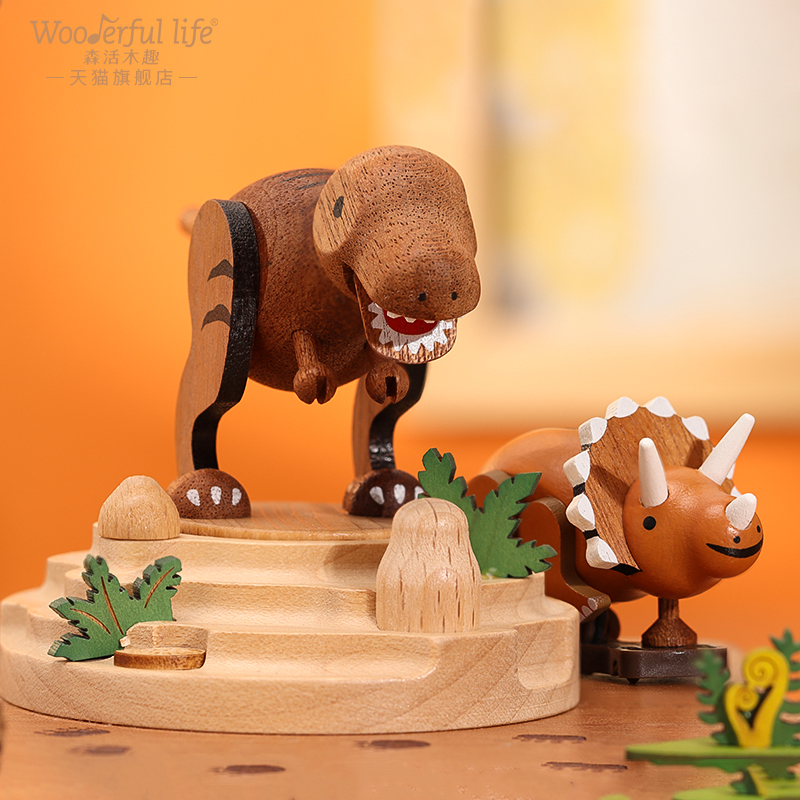 Sen Live Wooded Music Box Boy Toy Dinosaur Eight-soundbox Desktop Swing Piece Girl Boy Birthday Gift-Taobao