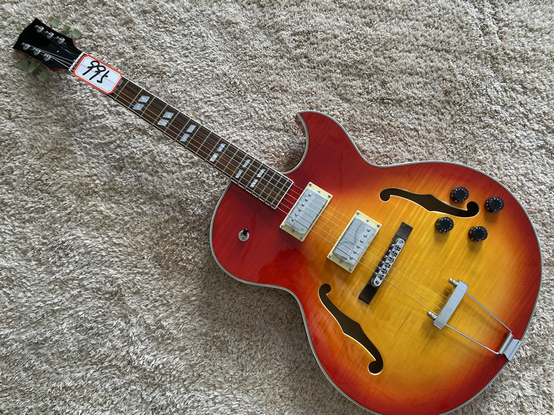 Exit Tail Single Full Hollow Jazz Jazz Electric Guitar Thin body front and back side maple wood tiger vein CS color Professional class-Taobao