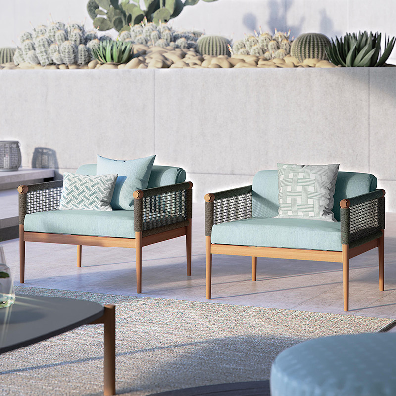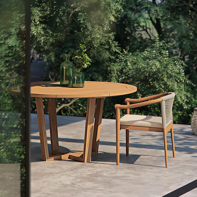 Outdoor tables and chairs courtyard balcony garden outdoor waterproof sunscreen Nordic solid wood rattan sofa coffee table round table long table