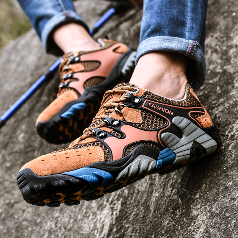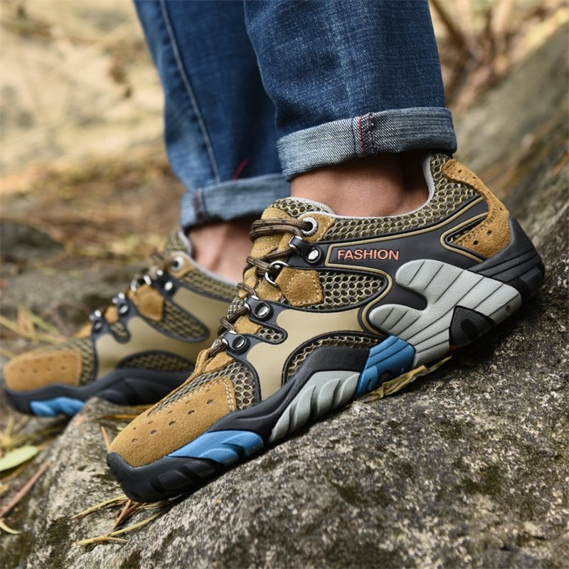 Western Regions Camel Casual Mesh Shoes Men's Mesh Breathable Sports Shoes Large Size Outdoor Hiking Shoes Mesh Hiking Shoes