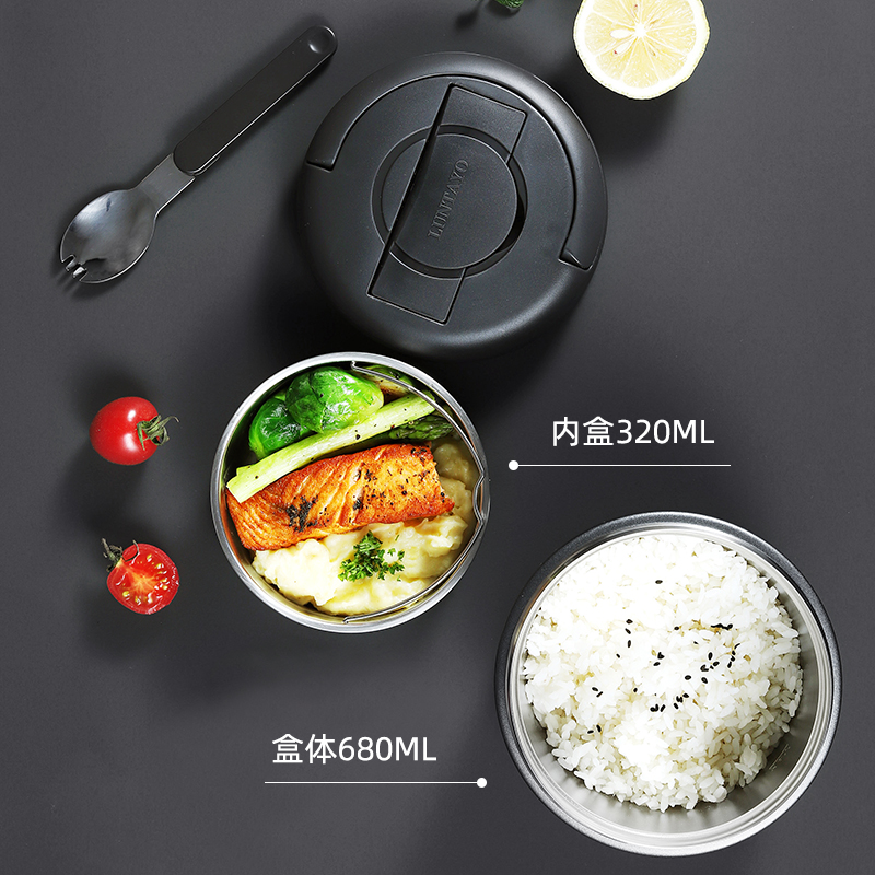 Japanese Luntayo-Japanese Stainless Steel Insulated Lunch Box Office Clan Free Box Long Insulation Barrel Large Capacity Portable