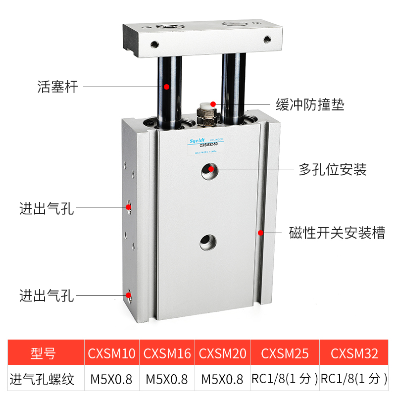 Small pneumatic high thrust TR dual-axis double-rod cylinder CXSM20 25 32-10 30 40 50 60*70 S
