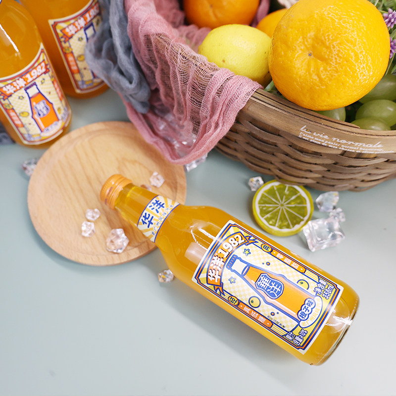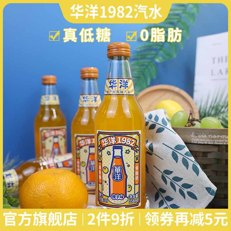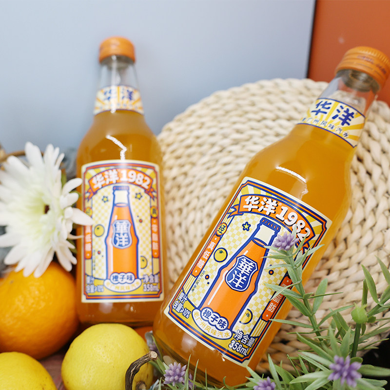 Huayang 1982 soda carbonated drink orange flavor 358ml*12 glass bottle juice old Guangzhou flavor soda