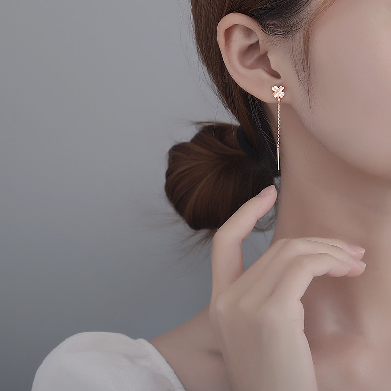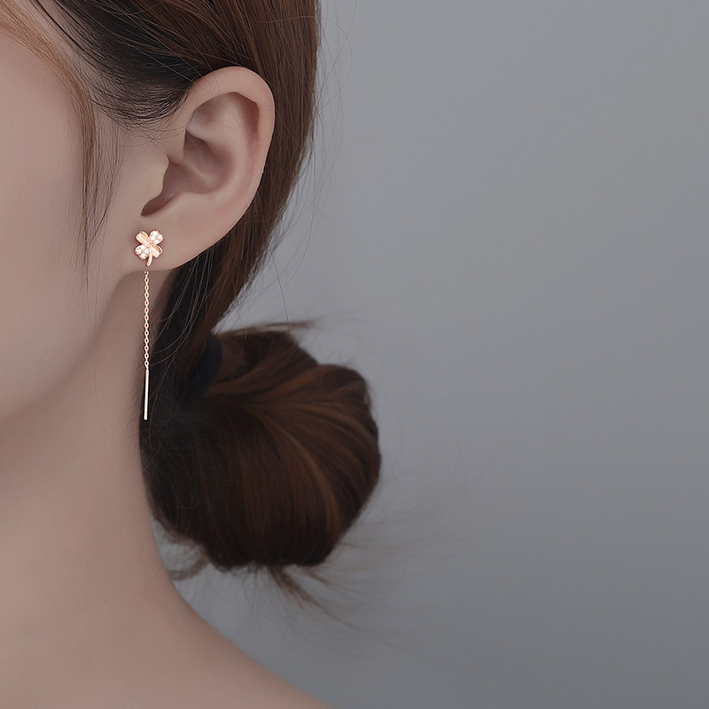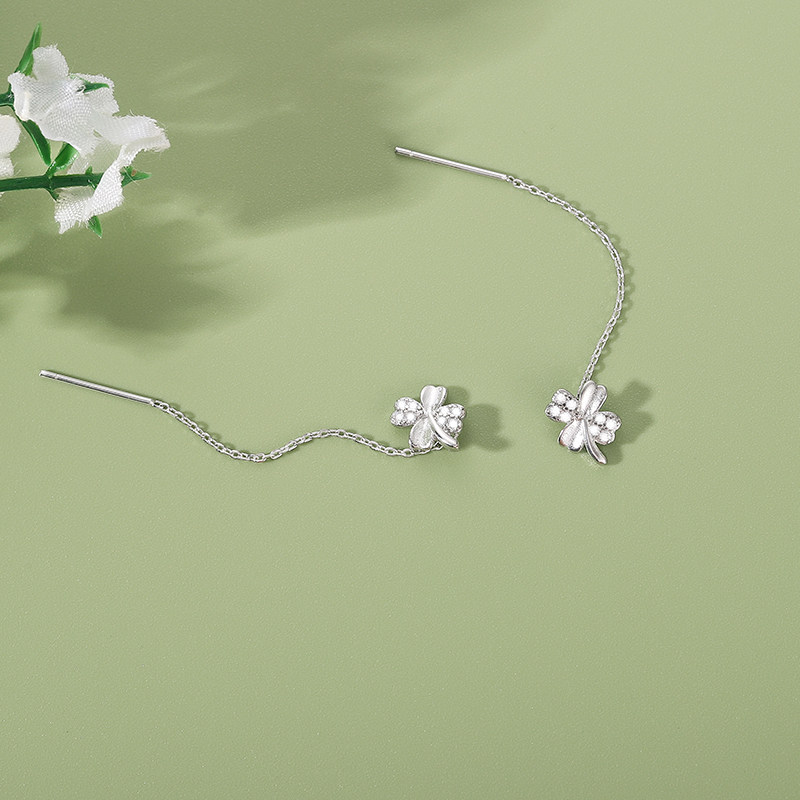 Four Leaf Grass Earrings Pair of Platinum Four-leaf Grass Earrings Pair of Rose Gold