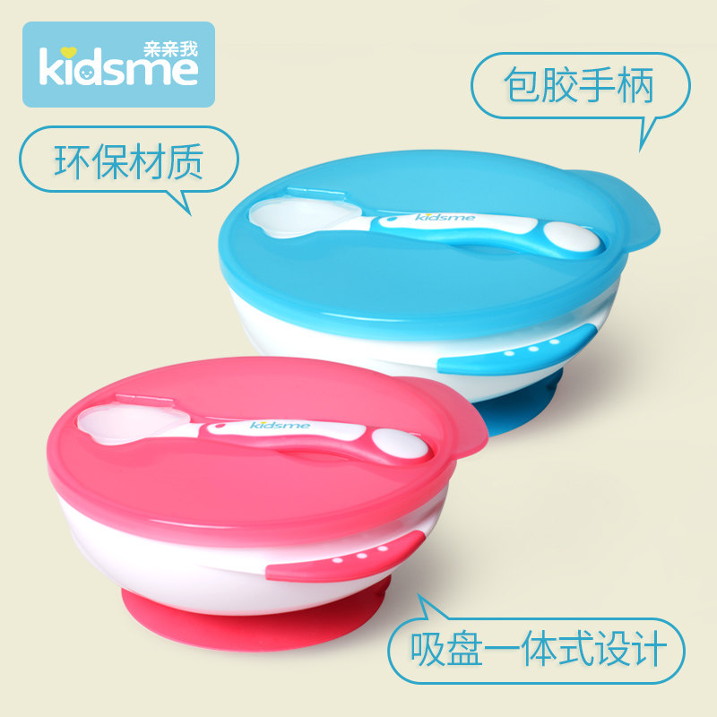 Pro-kiss me children cutlery baby training sucker bowl spoonful baby learn eating cutlery suit with cover spoon anti-Taobao