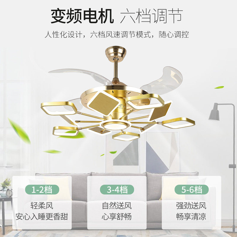 Lead point invisible ceiling fan lamp Nordic light extravagant frequency conversion large wind silent living room Restaurant bedroom fan chandelier integrated-Taobao
