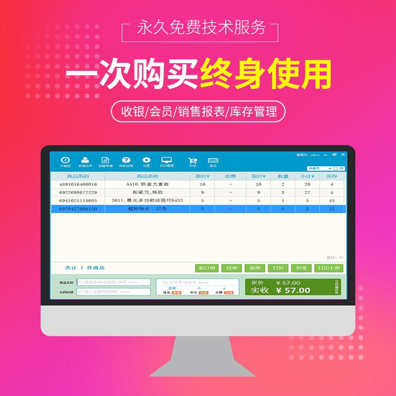 Supermarket cash registration software permanent management system convenience store members small clothing mother and child computer receipt points