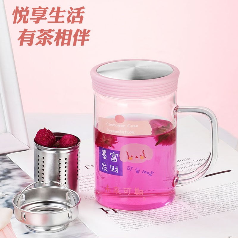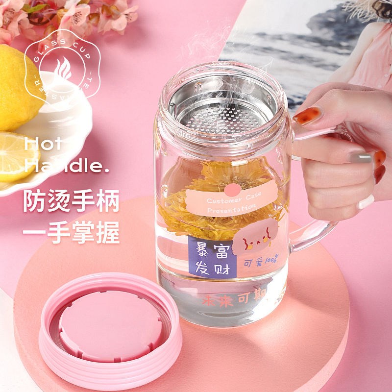 Water glass female summer with tea leak glass cup tea drinking water cup with lid high temperature resistant handle home high face value female