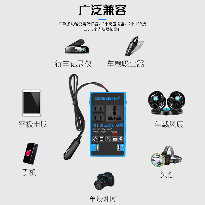 Car inverter 12v24v to 220v household power converter universal multifunctional car socket charger