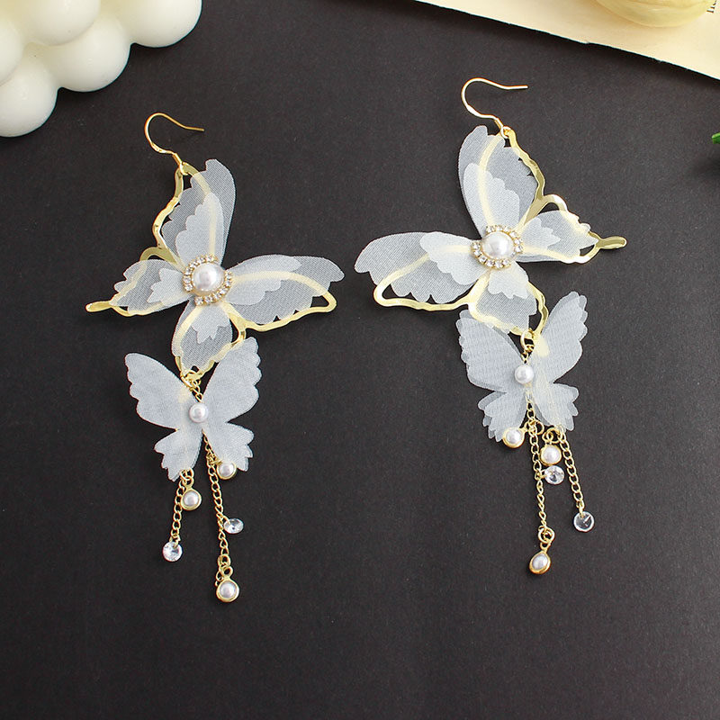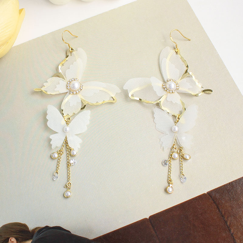High level Sensation Light Extravaganza Design White Super Fairy Butterfly Fluo earrings South Korean temperament Exaggerated Ear Clip Earrings