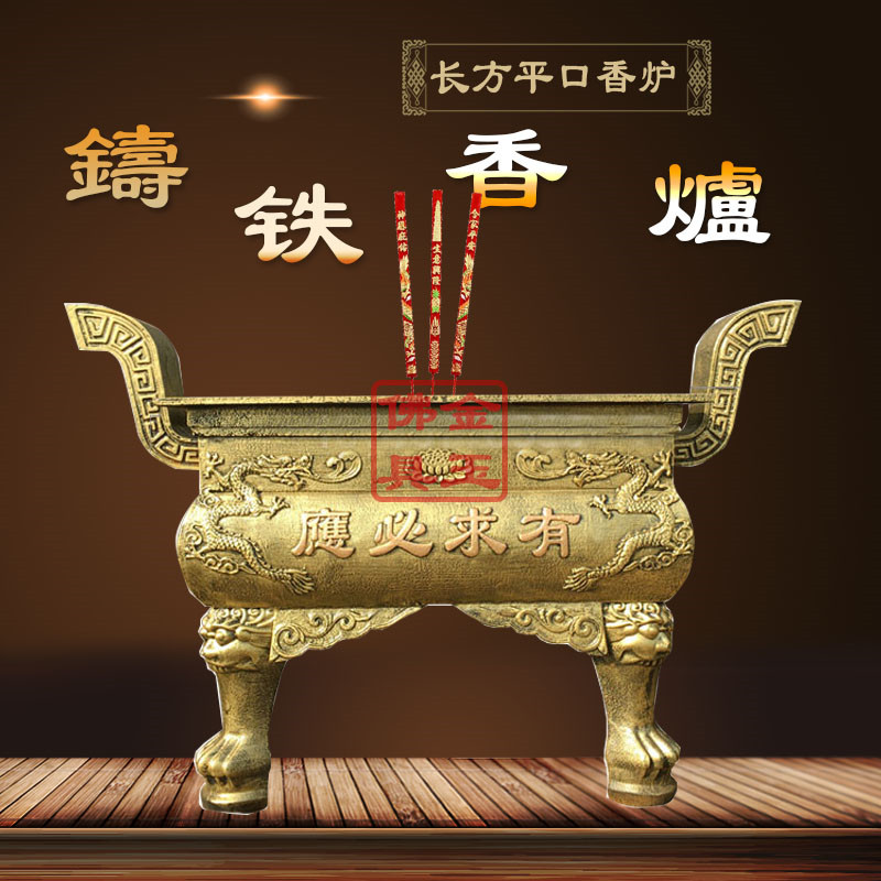 Temple rectangular flat mouth incense stove cast iron Customized special large size Cast copper Outdoor View Ancestral Hall Upper Incense Stove