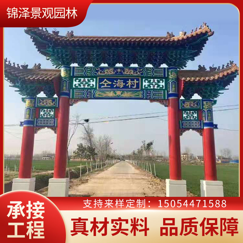 Gate building archway outdoor ancient building promenade Landscape pavilion courtyard solid wood pavilion Carbonized anti-corrosion wooden house grape rack
