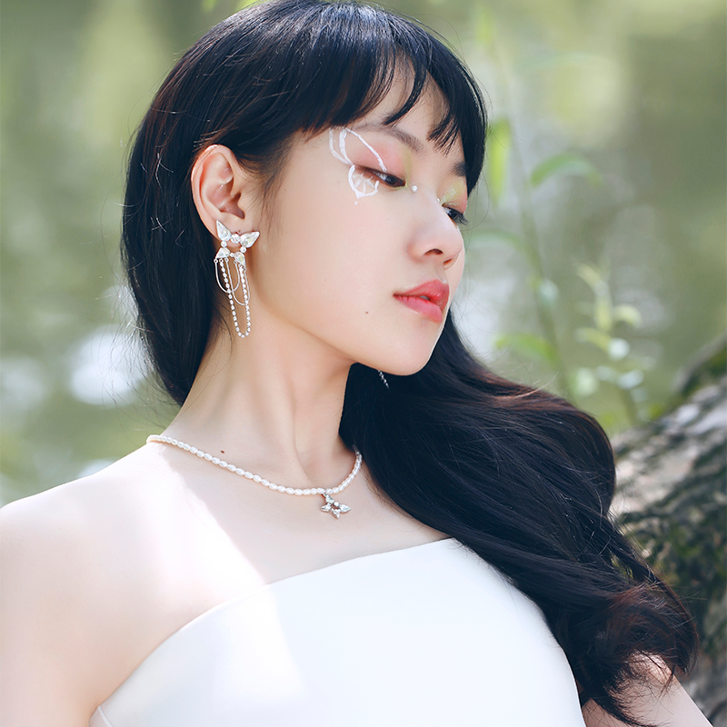 Abyb charming necklace light luxury niche vintage high-grade pearl butterfly love flower necklace design sense collarbone chain