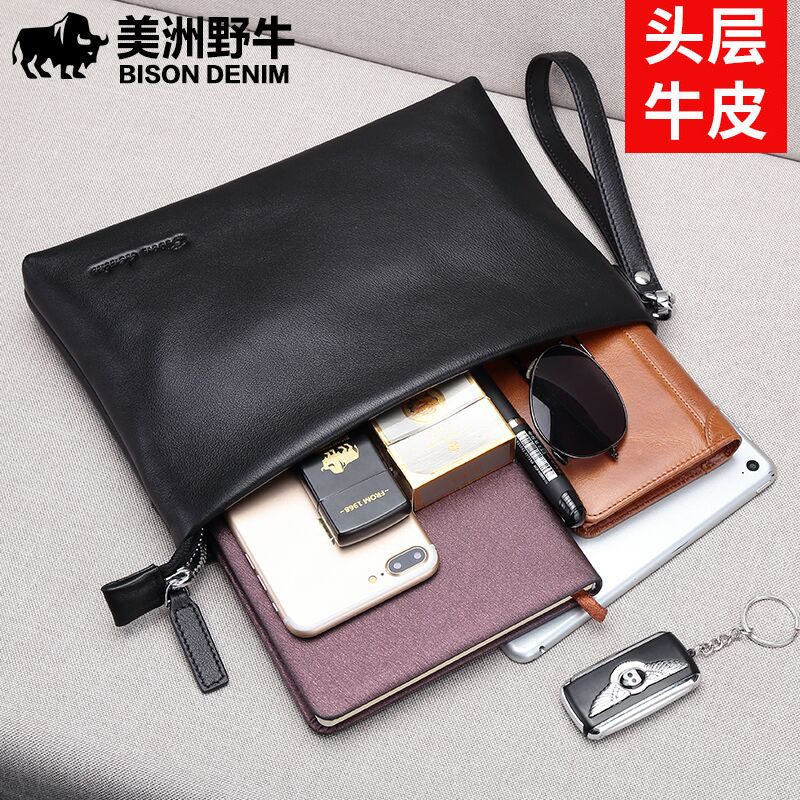Americas Bison Bull 732 Genuine Leather Handbag Male Letter Enveloping Business Handbags Casual Men's Handbags Bull Leather Hand Grip Bag
