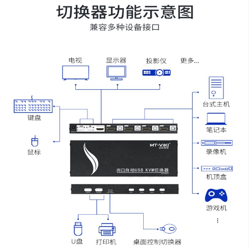 Maitrau 4-port KVM switcher HDMI HD 4K Key Mouse Display Co-shareware 4 in 1 out of USB SCREEN