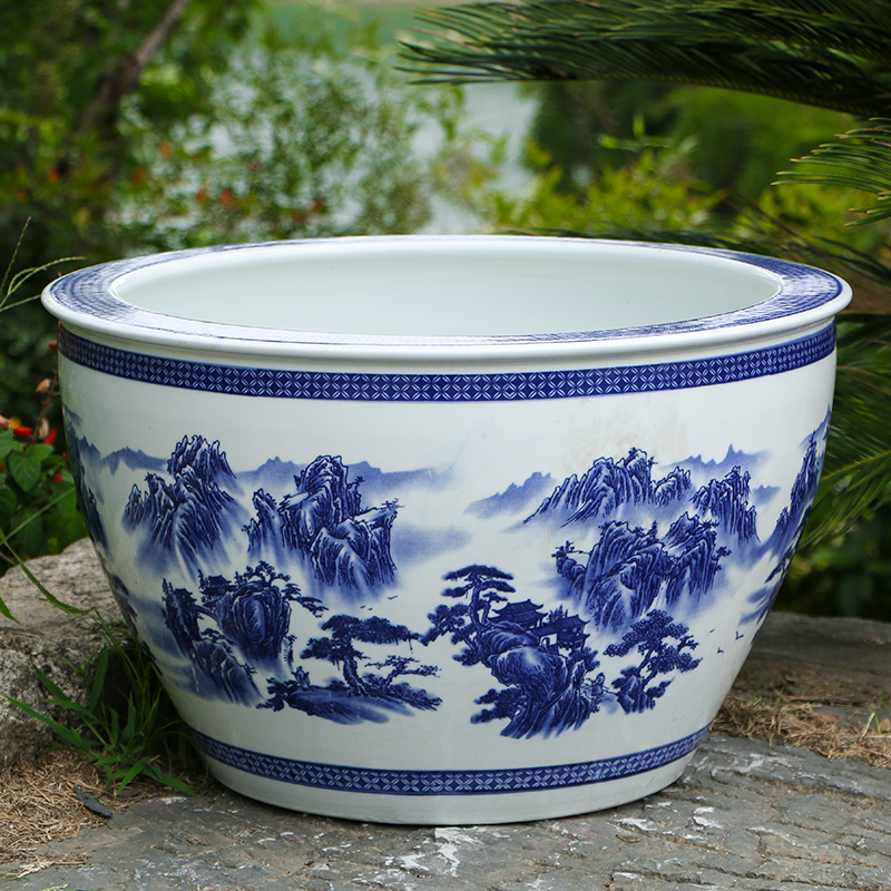 Garden big tank Jingdezhen blue and white porcelain water tank goldfish tank lotus bowl lotus water lily pot turtle tank hotel turtle tank