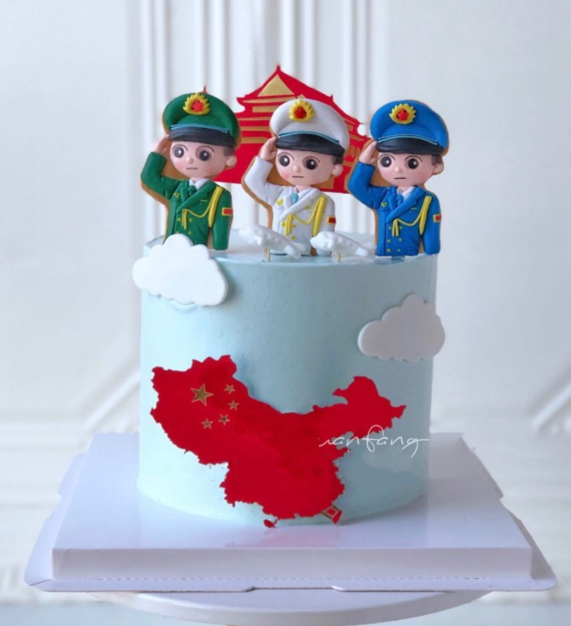 Soft Pottery Blue Air Force put a soft clay green army to swing a soft white navy to a 1 red flag one 2 days Anmen a 3 China map a 4 love you China a 5 motherland