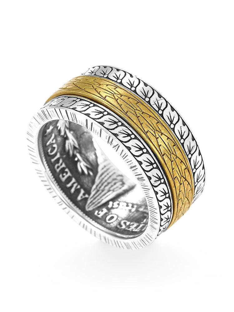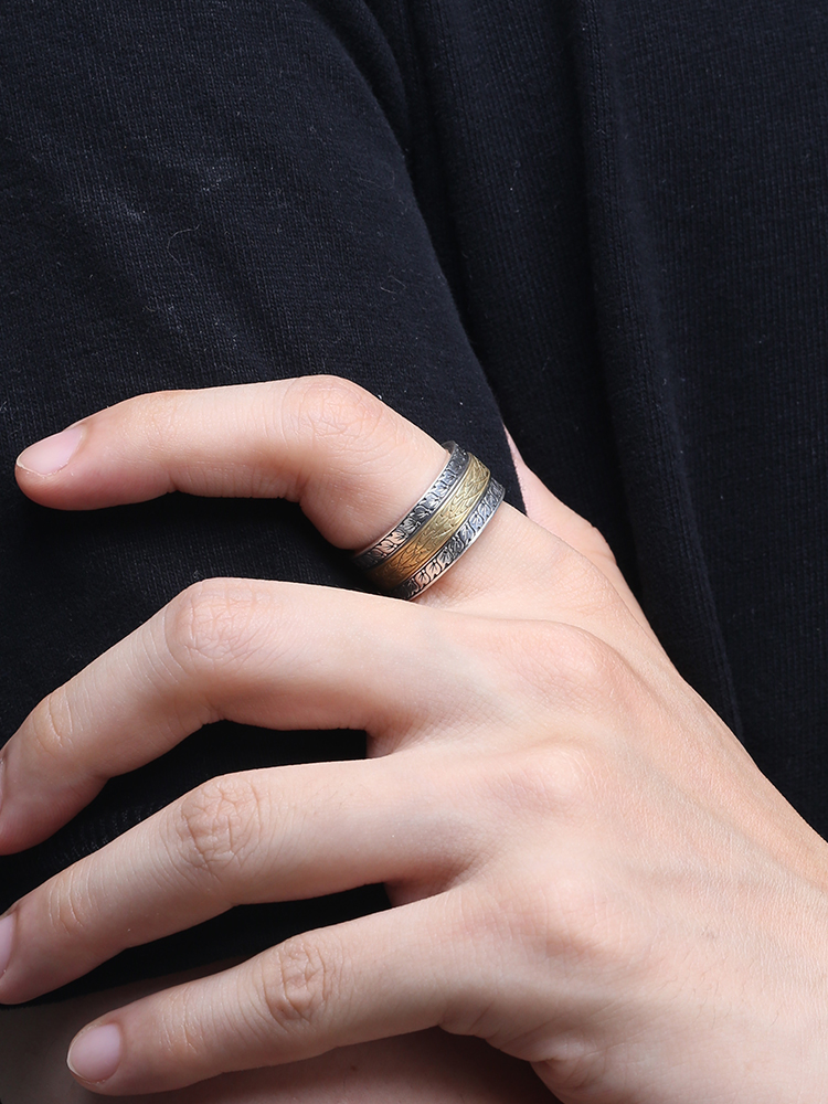 Ruibeila turnable antique coin single ring sterling silver men's vintage niche index band light luxury ring tide