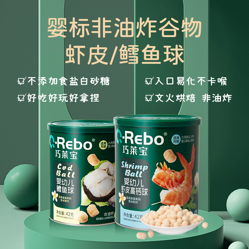 Qiaolaibao infant puff ball 42g cod flavor shrimp flavor baby healthy and nutritious cereal snacks non-fried