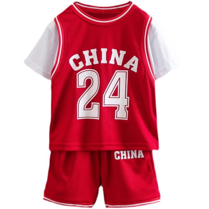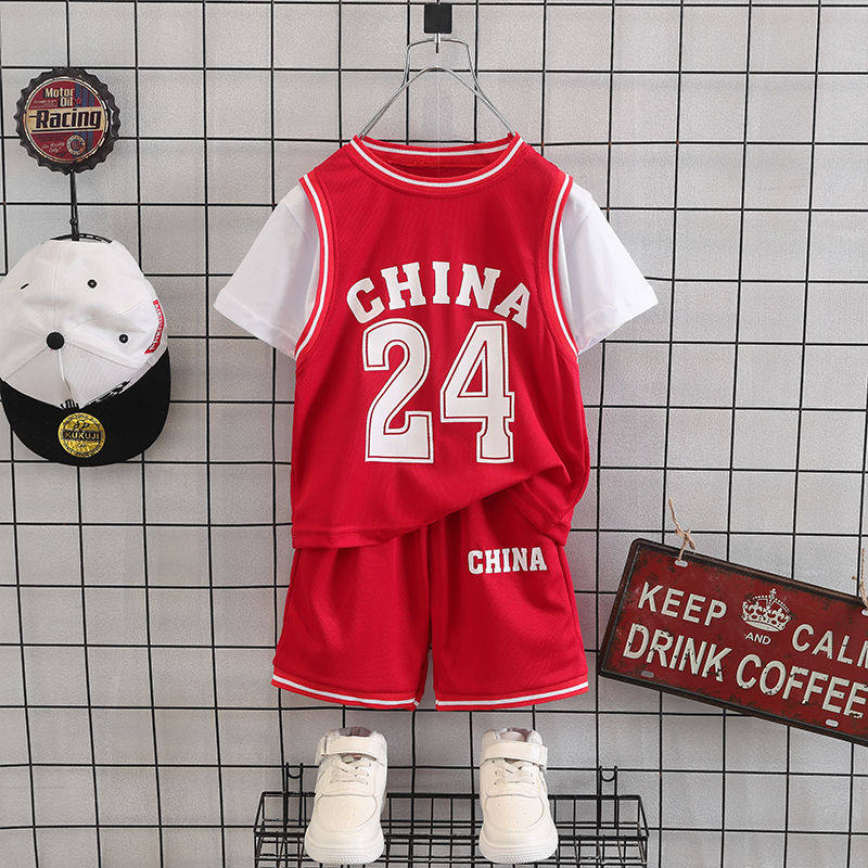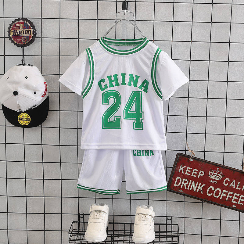 Boy Summer Clothing Basketball Suit Suit 2021 New Short Sleeve Foreign Pie Speed Dry Clothes Kids Summer Sports Two Suits Tide