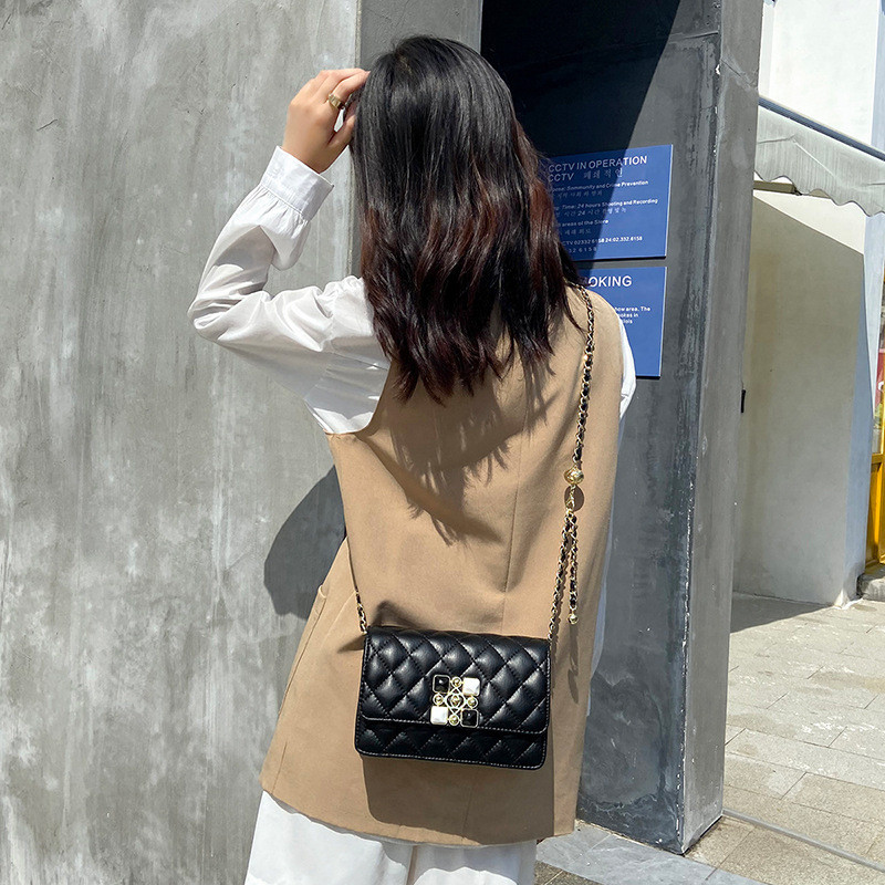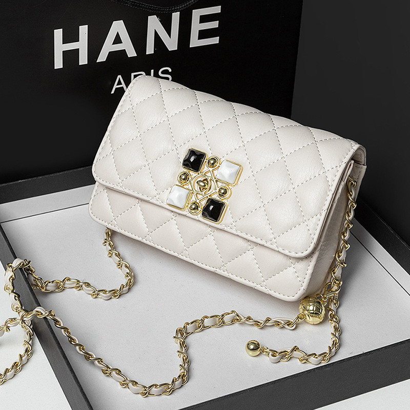 France DRCO women's bag genuine leather 2021 new small scent wind maginin small gold ball chain bag Single shoulder sloped small square bag