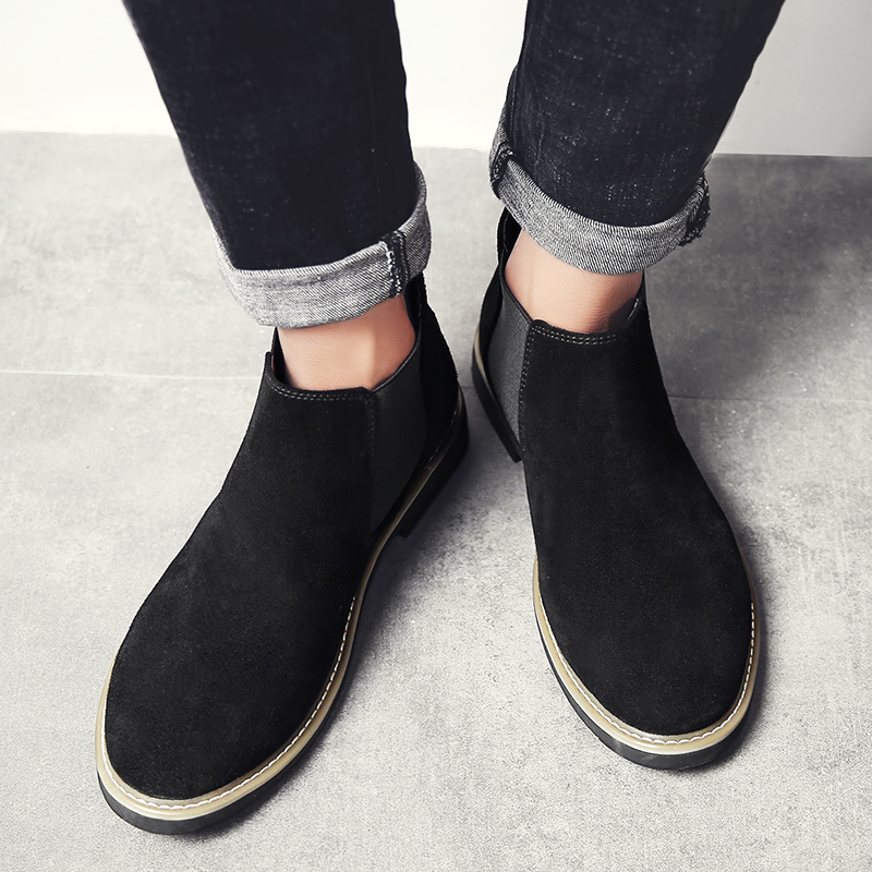 Western Regions Camel genuine leather plus velvet optional men's trend Chelsea boots casual Martin boots men