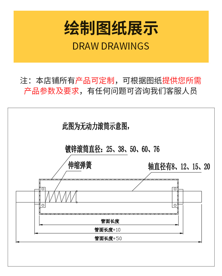 Diameter 2538 mm unpowered drum galvanized roller small assembly line conveyor roller stainless steel hob