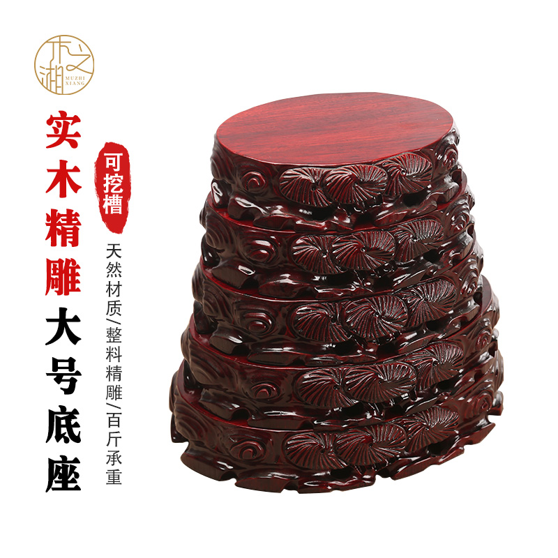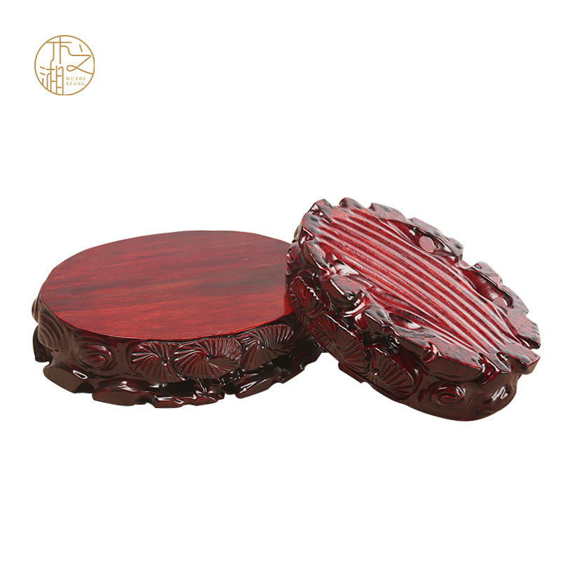 Customized Round Wood Root Root Carved Cover with Vase Pot View Craft Buddha Statue Building Round Wooden Building