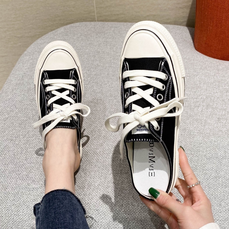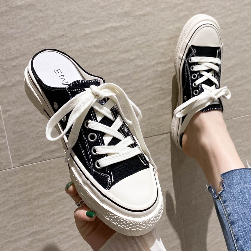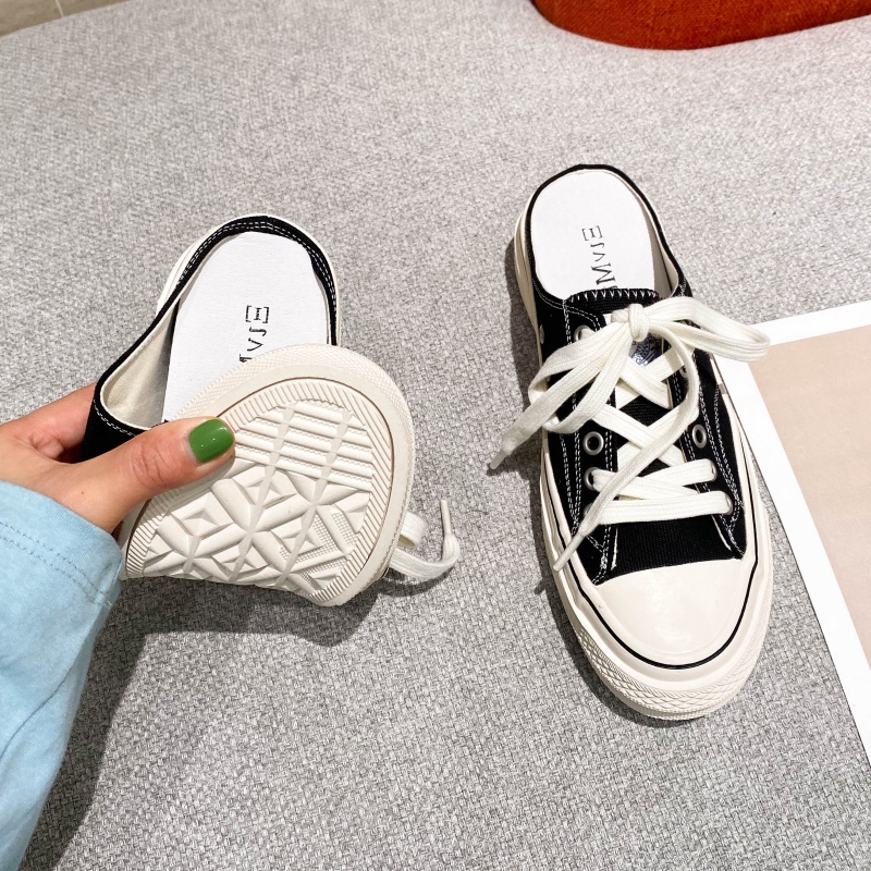 Little ckerwin South Korean JK Base Canvas With Canvas ~ Boomers Flat-bottomed Casual Board Baotou Half Drag